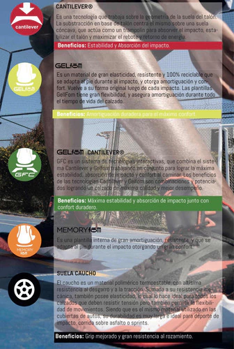 GFC es un sistema de tecnologías interactivas, que combina el siste- ma Cantilever y Gelfom trabajando en conjunto para lograr la máxima estabilidad, absorción de impacto y confort al caminar. Los beneficios de las tecnologías Cantilever y Gelfom son combinaciones y potencia- dos logrando un calzado de máxima calidad y mejor desempeño.